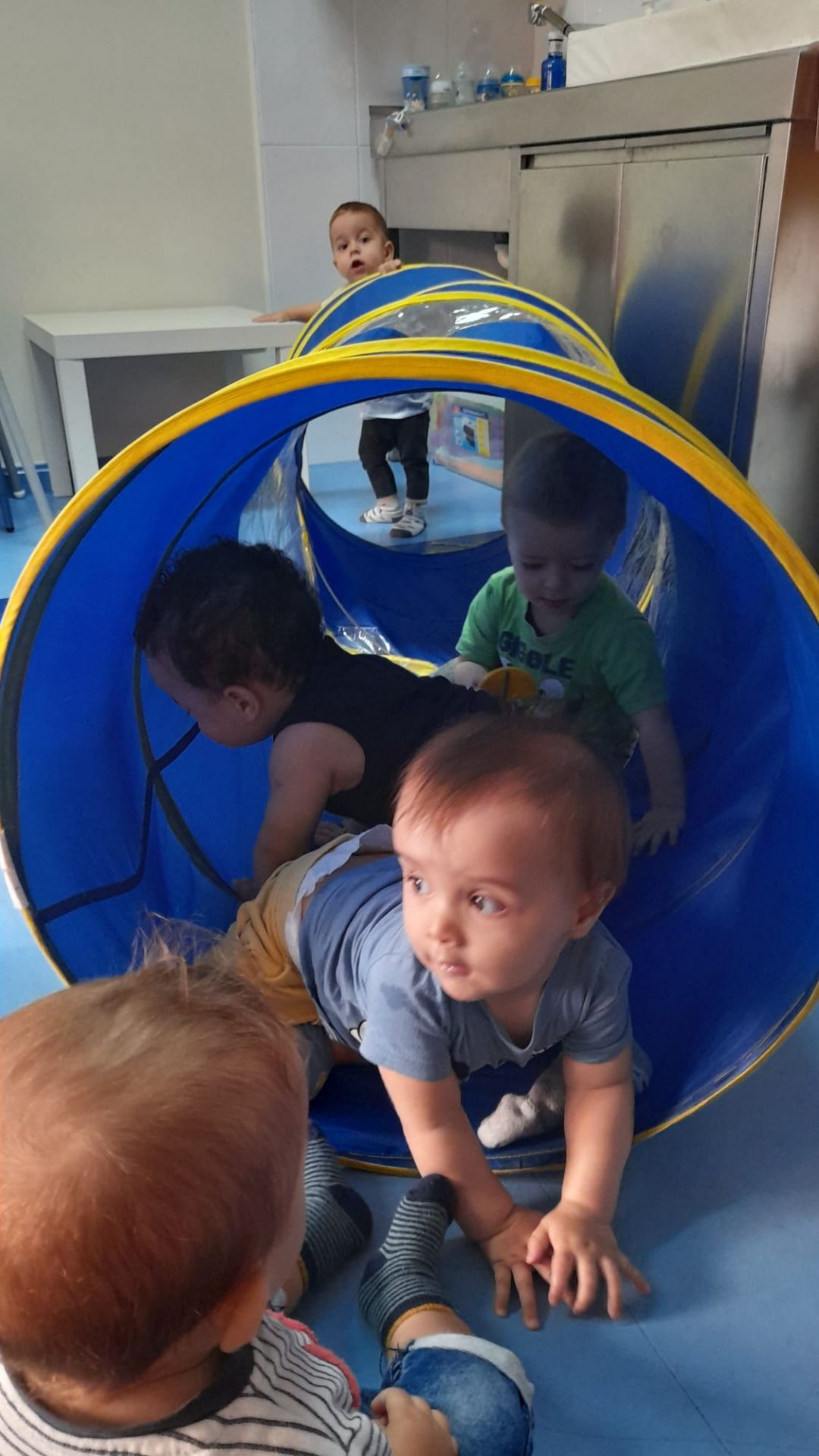 A esta edad el niño pasa por varias etapas en su desarrollo: sentarse, gateo, incorporación de pie, primeros pasos…. Nos gusta examinar todas las cosas que caen en nuestras manos